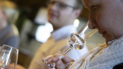 Die Bandbreite an Edelbränden bei Jürgen Datzberger kennt keine Grenzen. Wir verkosten blind die klassischen Edelbrände wie Williamsbirne oder den Marillenbrand. Aber auch Karottenbrand oder ein Bananenbrand wird uns unter die Nase gehalten. Bei einem Brand aber werden wir stutzig: der Wildsaugeist!