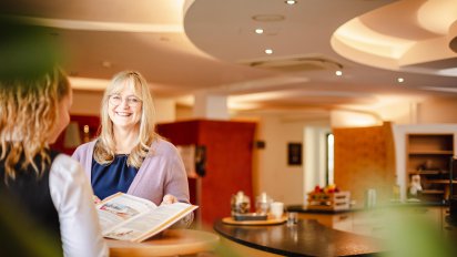 Seit fast 40 Jahren ist Maria, die Schwester vom Chef Johannes Scheiblauer, im Resort tätig und kennt jeden Handgriff. Sie absolvierte hier ihre Lehre und lernte so, alle Arbeitsbereiche und Herausforderungen, von der Pike auf kennen. Ob Service, Küche, Etage oder Rezeption, Maria kann überall mitreden und sich gut in den Arbeitsalltag der Angestellten hineinversetzen.